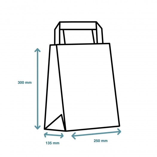 Our paper bags are crafted from strong 80gsm FSC certified Kraft paper, guaranteeing both durability and eco-sustainability. The reinforced tape handles provide effortless handling, while the spacious dimensions of (h)297 x (w)250 x (g)140mm make them versatile for a wide range of food and retail items.